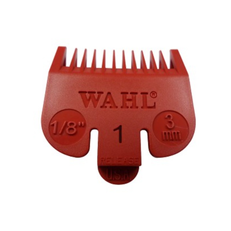 Professional grade plasticFits all size Wahl clippersEasy, snap-on mountingDurable nylon combRed Color-Coded Clipper Guide #1Leaves Hair 1/8" (3.0 mm)Numbered Coded CombWon't Snag or Pull HairMaintain Precision Lengths