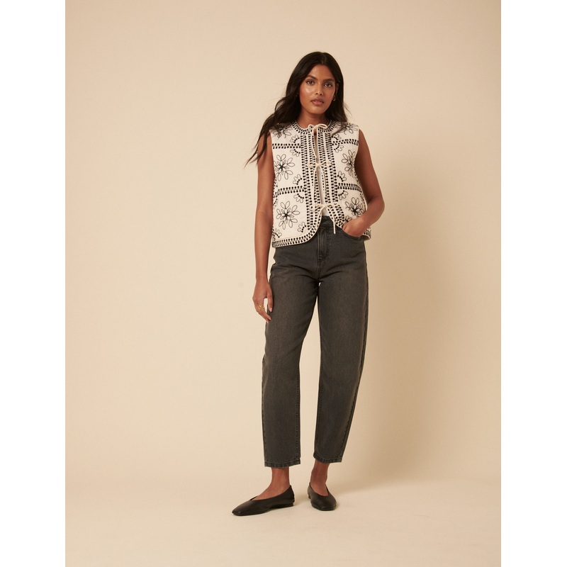 The most flattering fit. These black jeans have a subtle curved barrel leg silhouette. With a fitted high rise that nips in waist, this is comfort made effortlessly cool. Wear yours with everything thats already in your wardrobe.