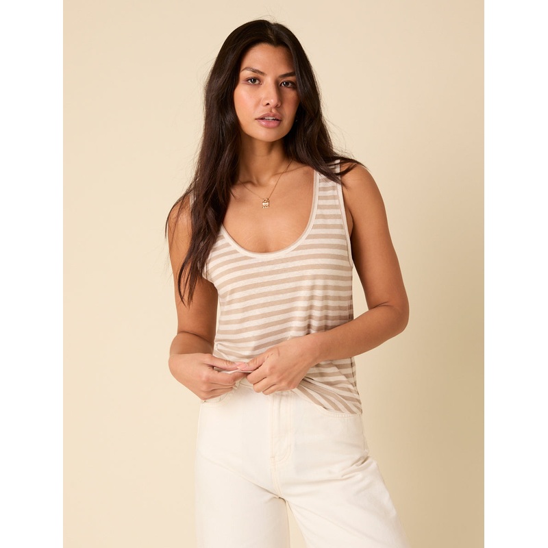 The scoop neck vest youll reach for all season. In a soft stone and white stripe, our slub top is a total wardrobe essential.
