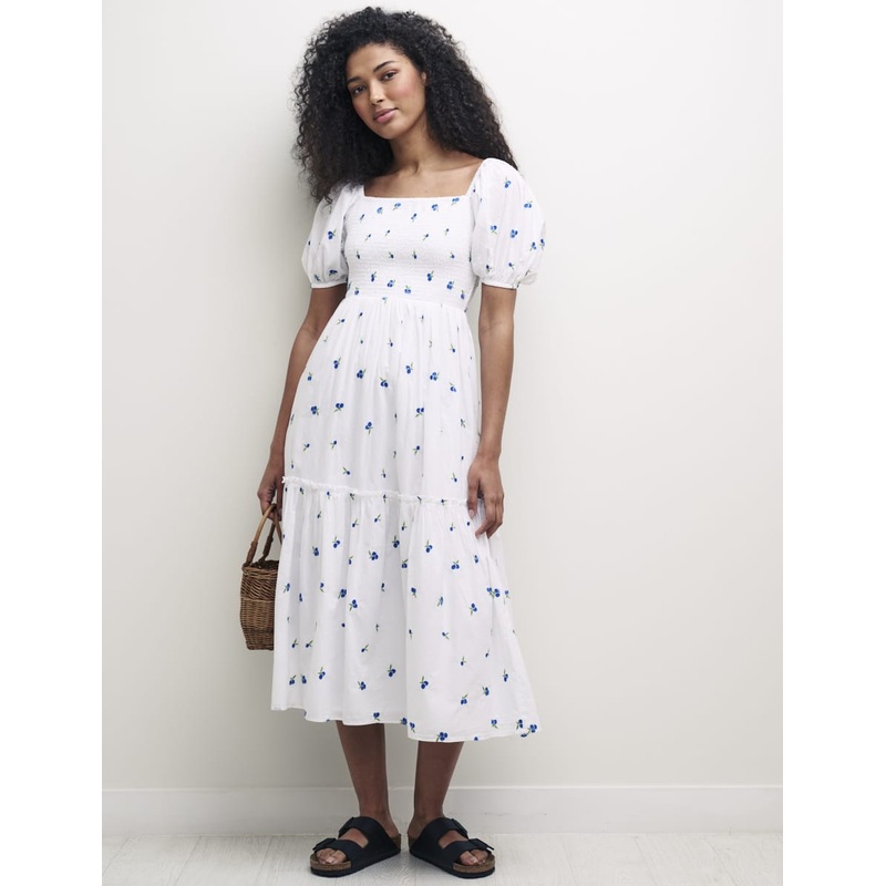 What pairs better with a sunny day than a breezy white dress? Enter our girl Tallulah. Stitched with a blueberry print. Paired with puff sleeves and a stylish square neck, shes just what your wardrobes always wanted. Team her with some summer sandals for your next day out.