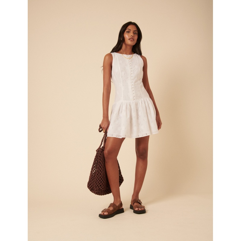 White Broderie Angalise Claudia Mini Dress
