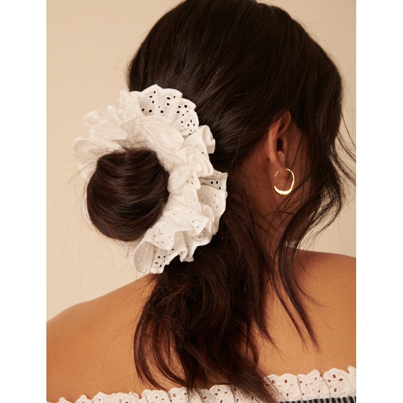 The finishing touch you didnt know you needed. In white broderie, this scrunchie works with everything from sleek ponytails to messy buns.