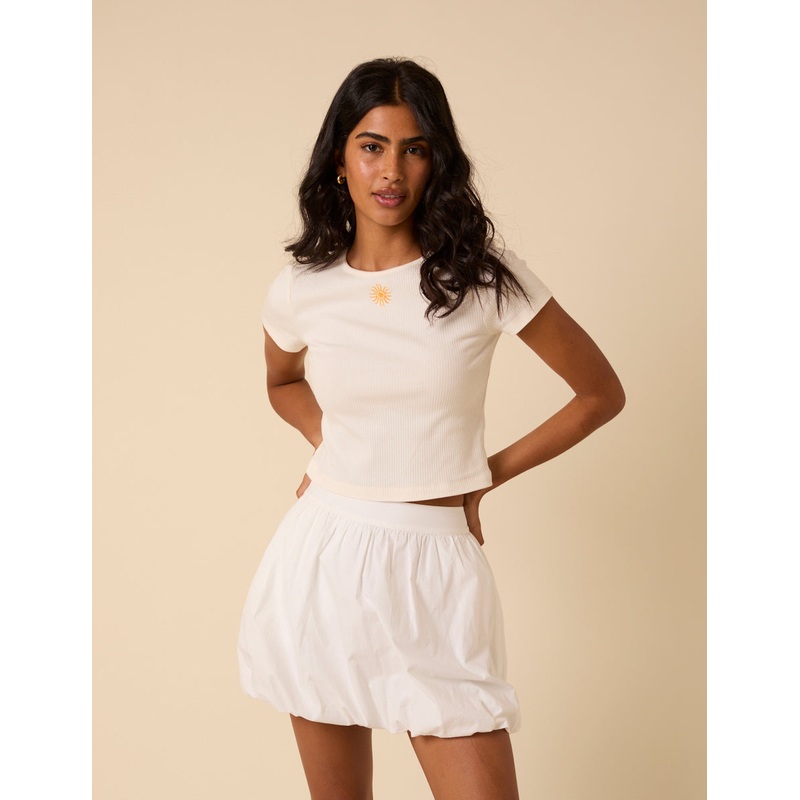On cloud nine. Coming in crisp white, our statement mini skirt features an on-trend bubble silhouette. She even has side pockets. Elasticated waist Side pockets Size tip: we recommend your usual size