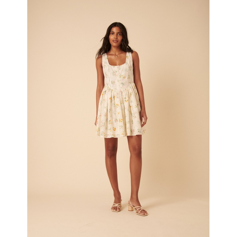White Ditsy Floral Cora Mini Dress