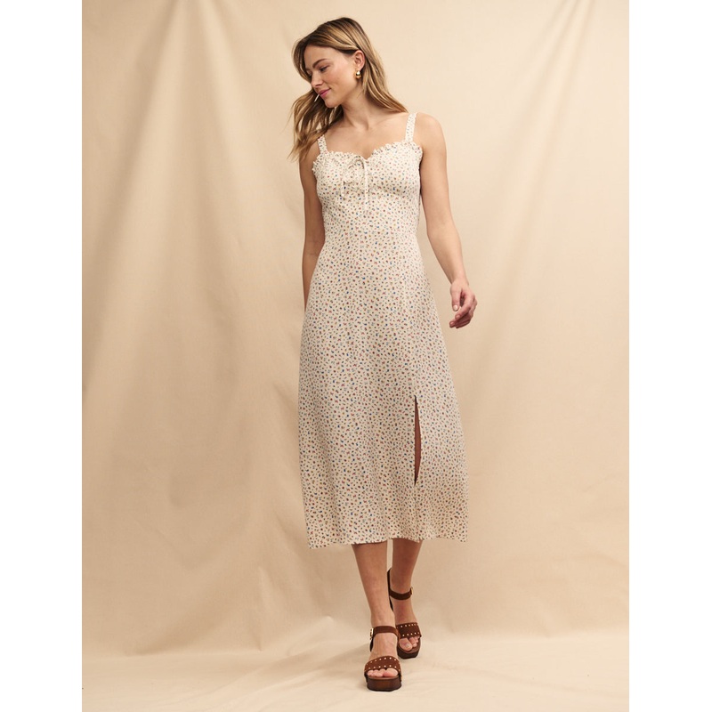 White Ditsy Floral Lucia Midi Dress
