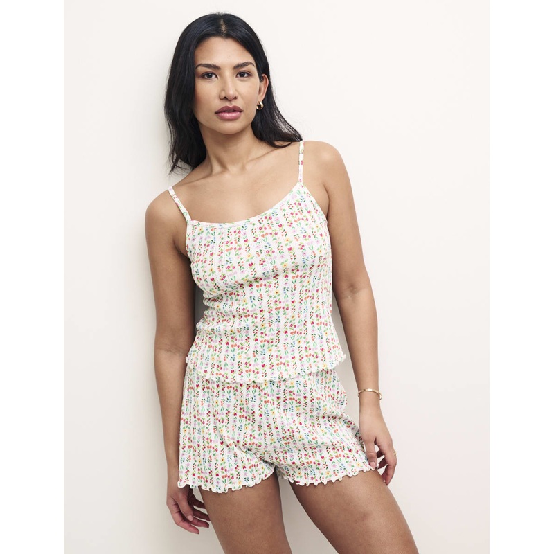 Stay in bed all day. This cami is super soft in floral print pointelle with a frilled hem. Lounge around in it with the matching shorts.Spaghetti strapsFrilled lettuce hemMatching Shorts