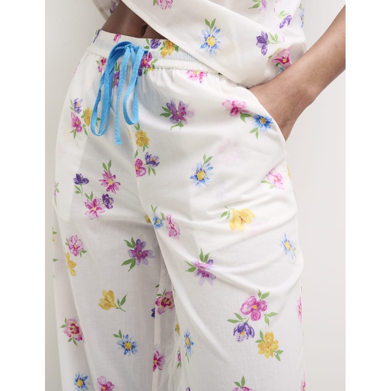 Sleep easy. Crisp and decorated with florals, theyre our freshest summer pick. V-neck Spaghetti straps String tie waist Pockets Wide leg cut that skims the body