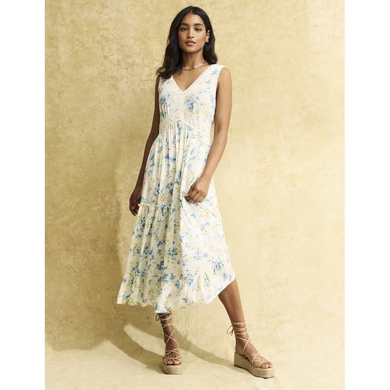 Forever flattering. This lace trimmed midaxi billows into a series of tiers that are perfect for swishing around in. Add to the summertime feel and style yours with espadrilles on holiday.