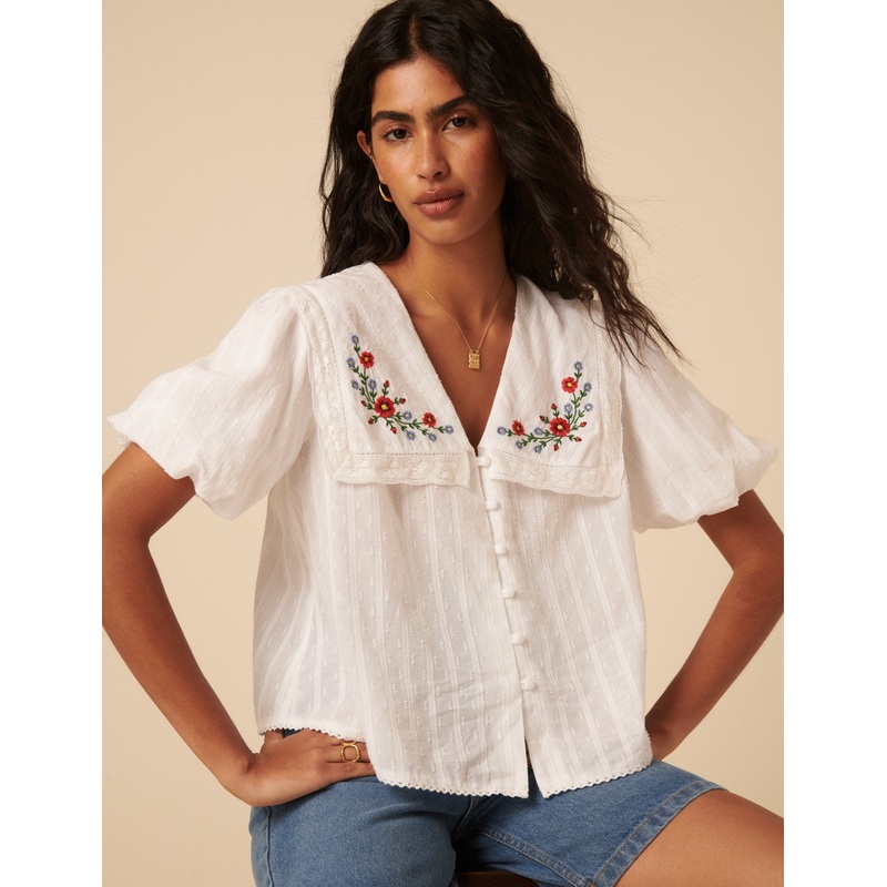 Be the first to review “White Floral Embroidered Collar Blouse”