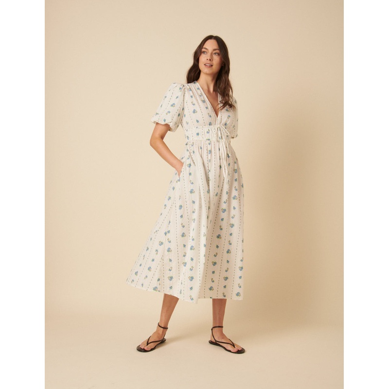 White Floral Printed Scottie Midi Dress