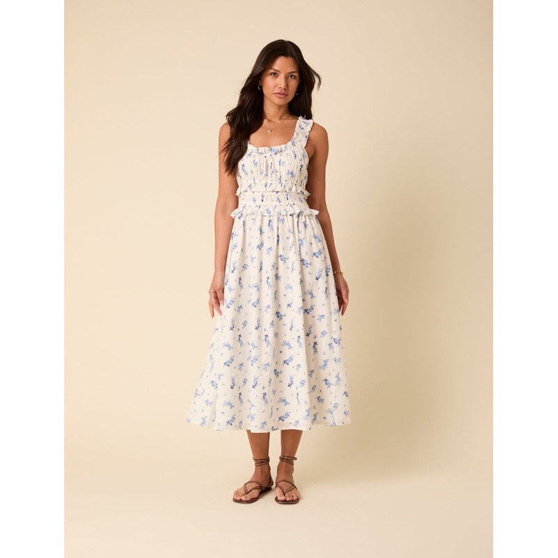 Welcome to the NC garden. This midi dress might be finished with frills, shirring and a string tie scoop neck, but its the delicate floral print thats the main focus.