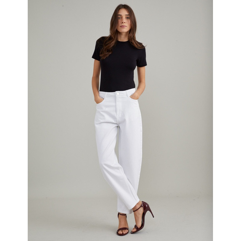 The most flattering fit. These white jeans have a subtle curved barrel leg silhouette. With a fitted high rise that nips in at the waist, this is comfort made effortlessly cool. Wear yours with everything thats already in your wardrobe.