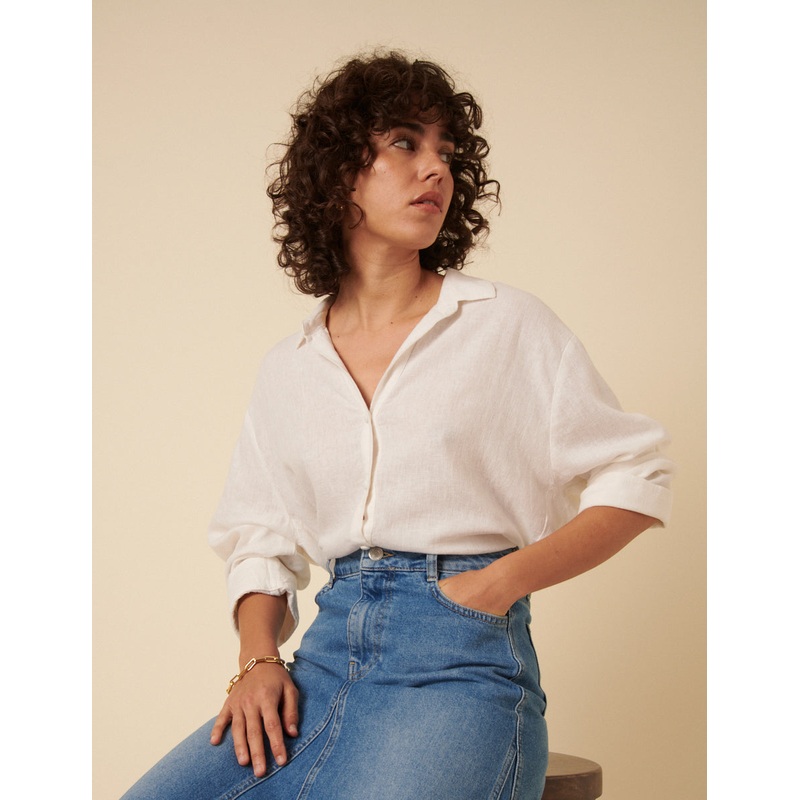 Exactly the kind of classic white shirt you need in your life. Tamars nice and light with an oversized cut thats been designed to flatter. Mid-length sleeves without traditional cuffs keep the look feeling relaxed. Style with trousers or jeans.