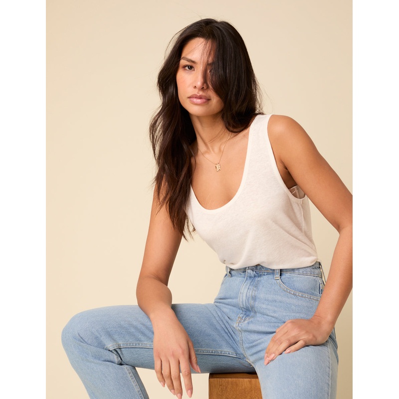 The easy layer you’ll reach for all season. In a slightly marl white, our scoop neck vest top is a total wardrobe essential.