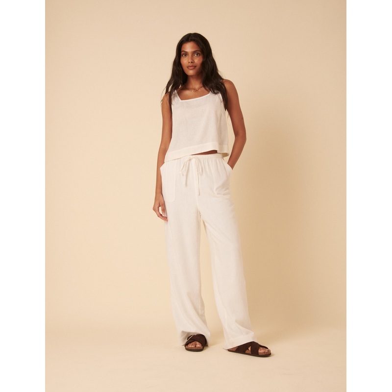 And relax. Our white wide leg trousers come stitched with oversized pockets and a soft drawstring waist in a breezy fit. Wear yours with everything you already own. Drawstring waist Pockets Wide leg cut that skims the body