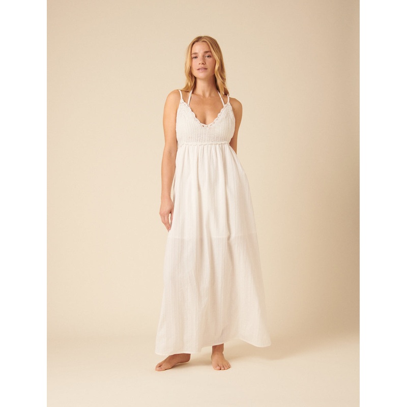 A beach dress with a little extra. With a white crochet top and flowing maxi skirt, we love the relaxed V-neck and adjustable straps. Just add sandals. V-neck Tie fastening Designed for a relaxed fit Size tip: we recommend your usual size