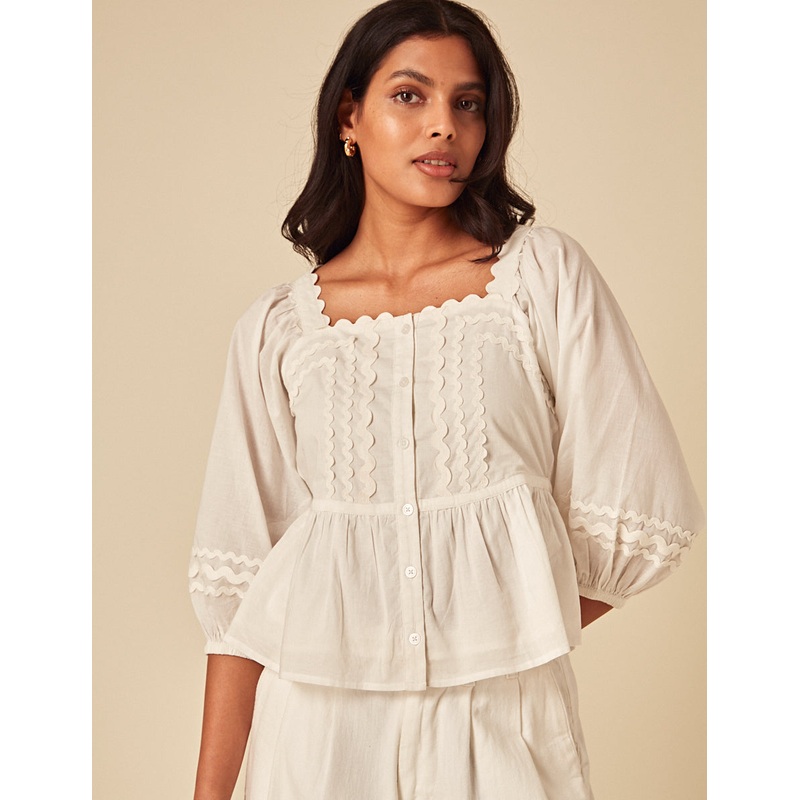 Effortless romance. The Rhett Blouse is finished with scalloped edges, a square neckline, and voluminous sleeves for a soft, vintage-inspired feel. Style with your favourite NC denim.