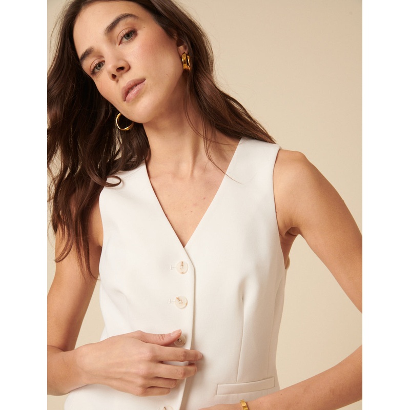 A tailored take on everyday. Coming in white, our waistcoat features a structured cut with a single-breasted front. Were wearing ours solo with jeans or with our matching white trousers. V-neck Button-up front Size tip: we recommend your usual size