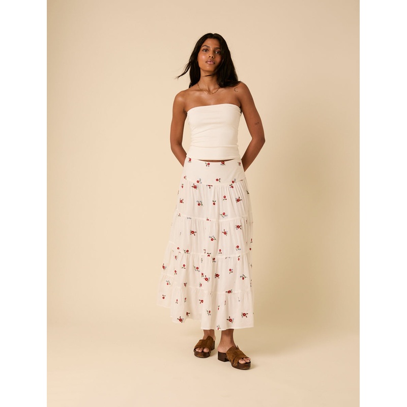 Be the first to review “White Tiered Floral Embroidered Midi Skirt”