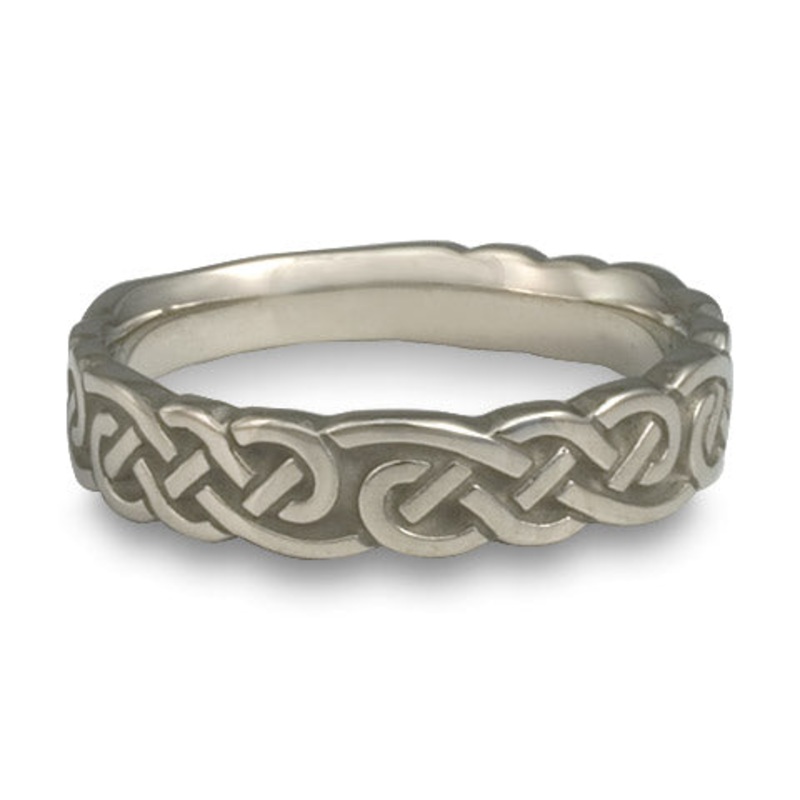 This Wide Borderless Infinity Wedding Ring in Platinum by Katherine Aberle is made with eco-friendly methods using recycled Platinum. It is sent to you via free Fedex ground shipping. This ring is available in sizes ranging from size 5 through size 12. Oth