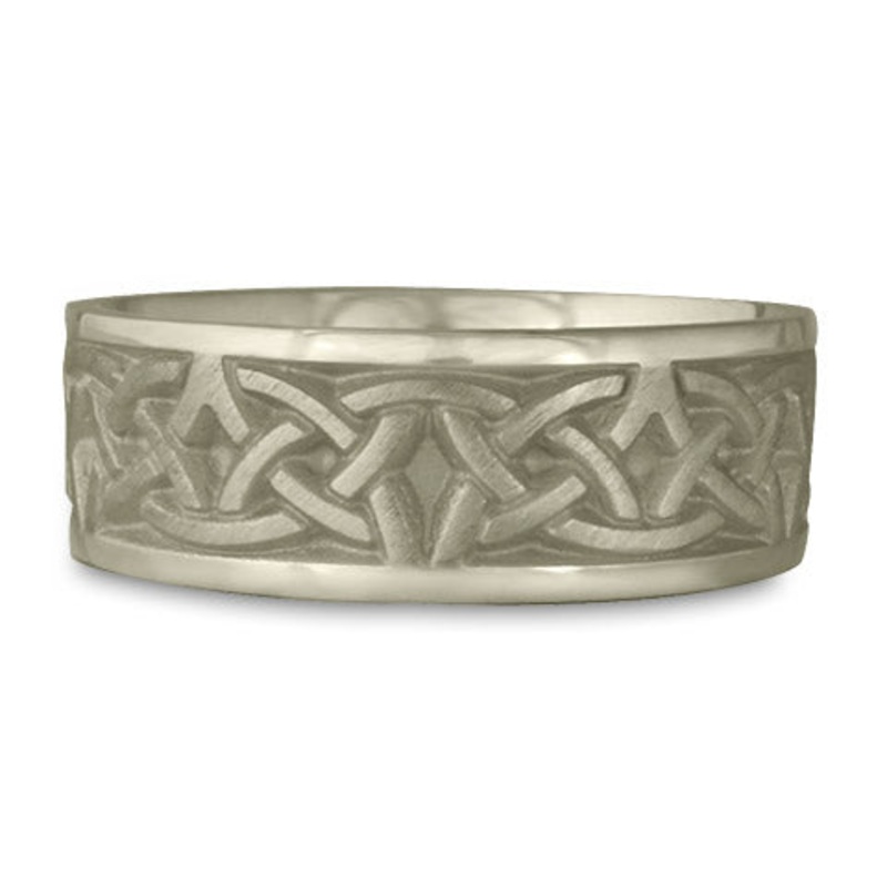 This Wide Celtic Arches Wedding Ring in 18K White Gold by Katherine Aberle is made with eco-friendly methods using recycled 18K White Gold. It is sent to you via free Fedex ground shipping. This ring is available in sizes ranging from size 5 through size 1