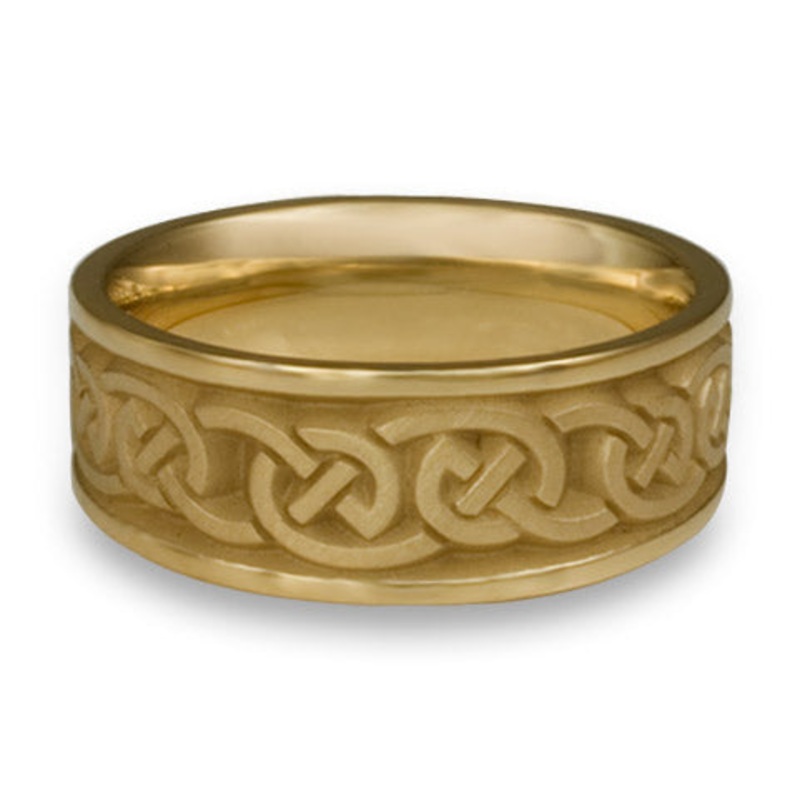 This Wide Cheek to Cheek Wedding Ring in 18K Yellow Gold by Katherine Aberle is made with eco-friendly methods using recycled 18K Yellow Gold. It is sent to you via free Fedex ground shipping. This ring is available in sizes ranging from size 5 through size 12. Other sizes may also be available. Please inquire by telephone for pricing on these.