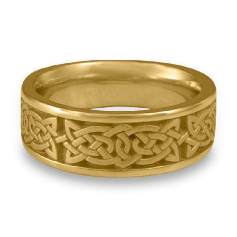 This Wide Galway Bay Wedding Ring in 18K Yellow Gold by Katherine Aberle is made with eco-friendly methods using recycled 18K Yellow Gold. It is sent to you via free Fedex ground shipping. This ring is available in sizes ranging from size 5 through size 12. Other sizes may also be available. Please inquire by telephone for pricing on these.