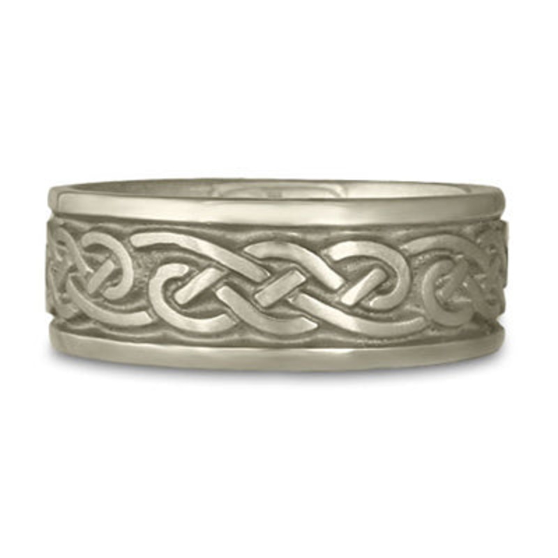 This Wide Infinity Wedding Ring in 18K White Gold by Katherine Aberle is made with eco-friendly methods using recycled 18K White Gold. It is sent to you via free Fedex ground shipping. This ring is available in sizes ranging from size 5 through size 12. Other sizes may also be available. Please inquire by telephone for pricing on these.
