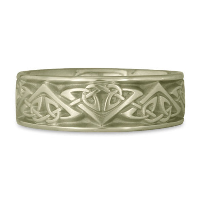 Symbolic Meaning: The Monarch ring, with its great triangles formed by a thin line sweeping through the ring like the outlines of a mountain, symbolizes power and achievement two individuals coming together to focus and direct their energies for specific intentions which are uplifting for all. There is a strong sense of working together, equally, in the shape of a heart nestled within incredibly strong energy. The ring carries a feeling of Royalty, as the name suggests.