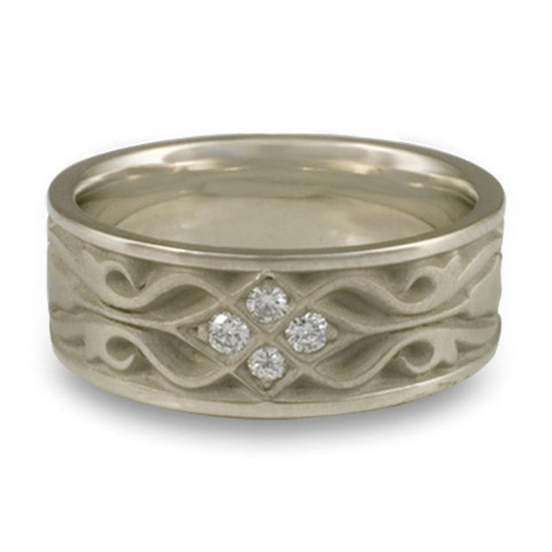 This Wide Tulip Braid Wedding Ring with Diamonds in 14K White Gold by Katherine Aberle is made with eco-friendly methods using recycled 14K White Gold. It is sent to you via free Fedex ground shipping. This ring is available in sizes ranging from size 5 through size 12. Other sizes may also be available. Please inquire by telephone for pricing on these.