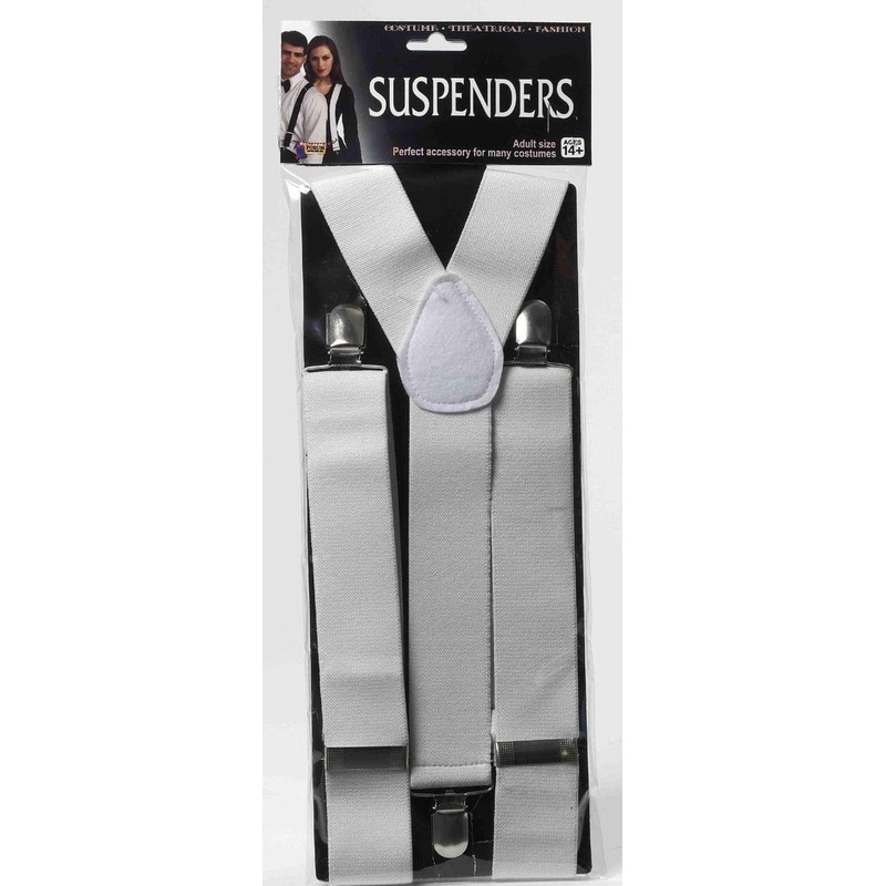 Forum Novelties Wide White SuspendersFinish your look with snappy accessories! The White Adult Costume Suspenders are sure to accessorize your ensemble with character. Works with a variety of costume looks and themes. Ideal for Halloween, costume parties,
