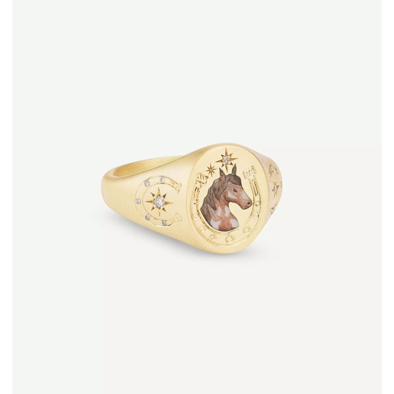 This bold signet ring is a wild ride of freedom and desire, and a talisman of luck for the journey.