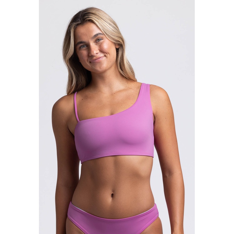Coming in hot, the Willa women's bikini top is perfect for the surfer who wants a little flair. This bikini top can hold up to any challenge and look good doing it with its asymmetrical straps and full coverage front. Wear this surfing bikini top in the wa