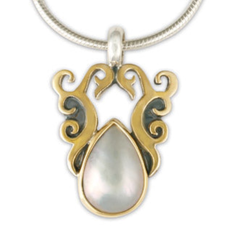 This pendant has two of our Wind Horse design curling around a teardrop pearl.14K Gold over SilverDimensions: 1 1/16" Long X 3/4" WideDesigner: Paulina Ramerez. 30 Day Returns: You can return your jewelry for 30 days for a full refund, less shipping. Learn