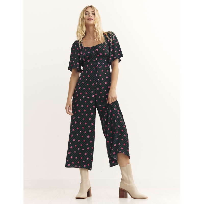 You’re looking at the piece you’ll never want to take off this season. The Winnie jumpsuit, with its sweetheart neckline, short sleeves and loose-fitting silhouette, is a great option for casual days but can be dressed up if you prefer. Our favourite part is the print. Florals on top of checks? Yes please! It’s also available in curve sizing.