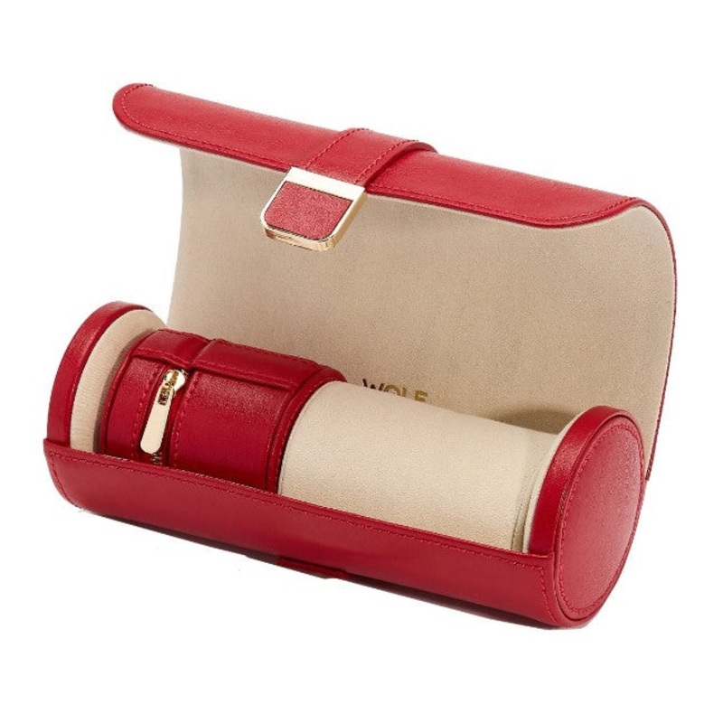 This beautiful Red Palermo double watch roll is perfect for traveling. This roll is perfect for two watches up to 42mm and includes a pouch for other jewelry. LusterLoc: Allows the fabric lining the inside of your jewellery cases to absorb the hostile gase
