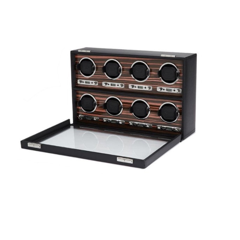 Take your fine timepieces for a ride in a Roadster. Aged wood dashboards, chrome spoked wheels, leather that is glove soft. Roadster – inspired by the best of British motorcars, Jaguar, Aston Martin, Bristol and the like. Turning your watch perfectly to a precise number of turns. Ebony macassar polished wood, the perfect backdrop for your watch.