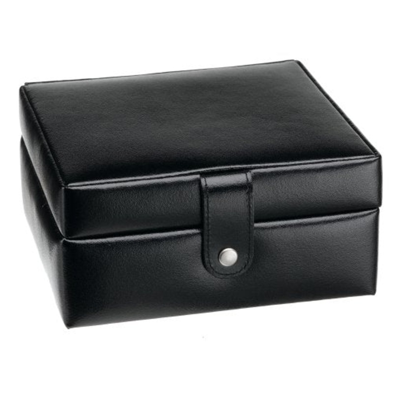 Jewellery Box with Grooming SetColor: blackmulti-storage compartmentsDimensions: 6"w x 3"h x 6"d
