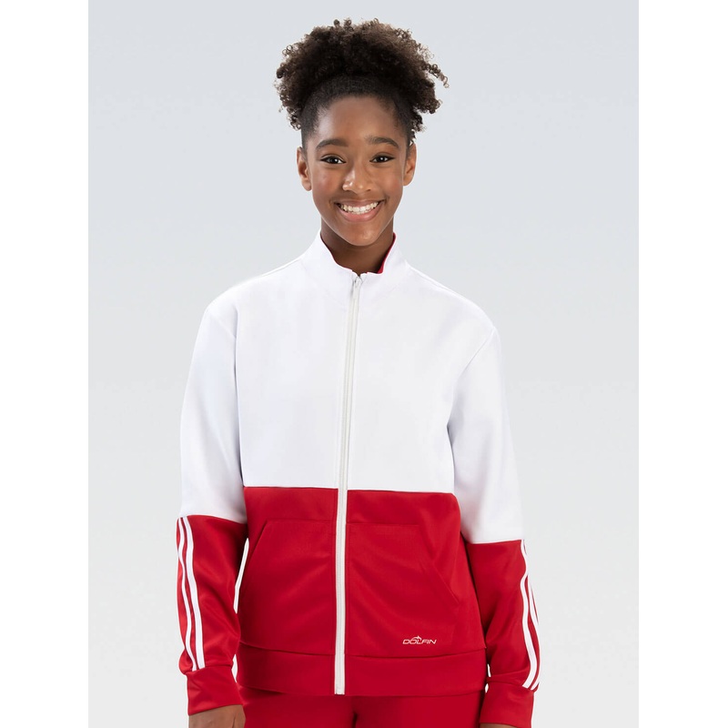 Red and white and ready for your entire team, this color block warm-up jacket is ultimate fit for your squad.