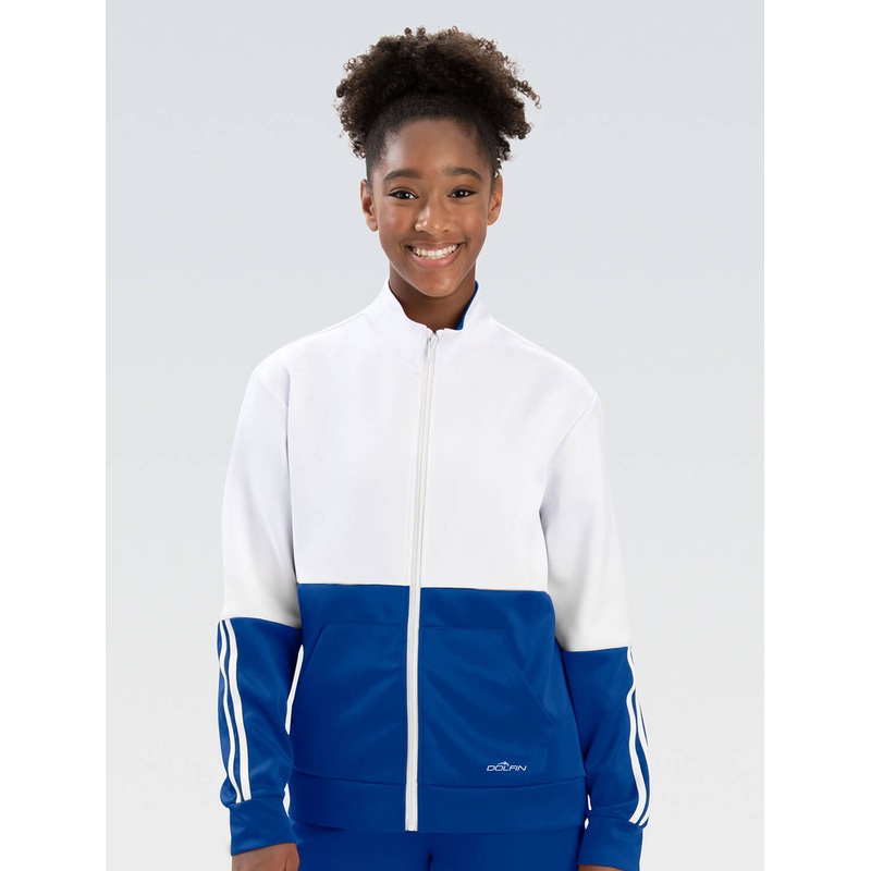 Royal and white color block is featured on this unisex warm-up jacket for your team! With a full zip and stylish look, this comfortable jacket is pool deck ready!Features & Benefits:warm-up jacket in color block Available in different color block ways Colo