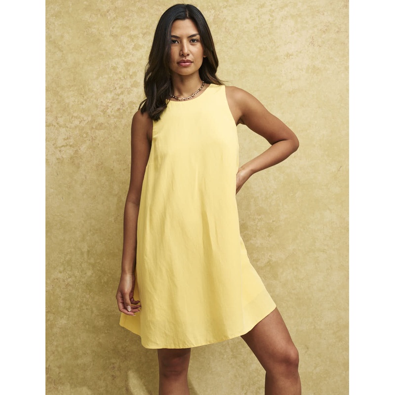 The easiest outfit. Cut to classic shape, this sunshine yellow shift dress is a must-have. With a round neckline and a flippy skirt, Betty truly will take you anywhere this summer. Dress her up or down she does both.