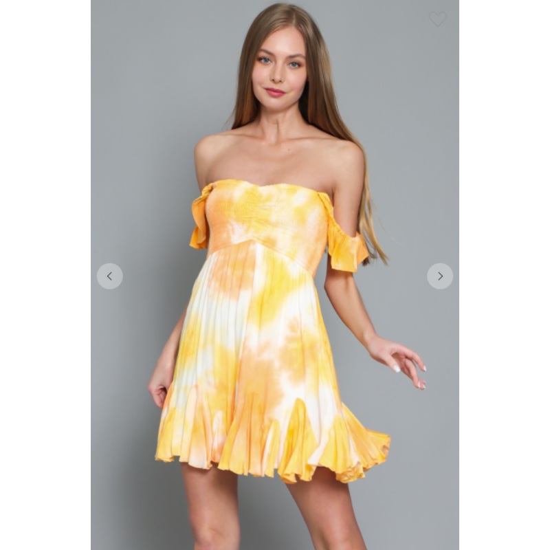 So cute and perfect for Spring and Summer or that next vacation! Smocking at the top and easy flowy bottom. Model is wearing a small. SELF- 100% RAYON LINING - 100% POLYESTER