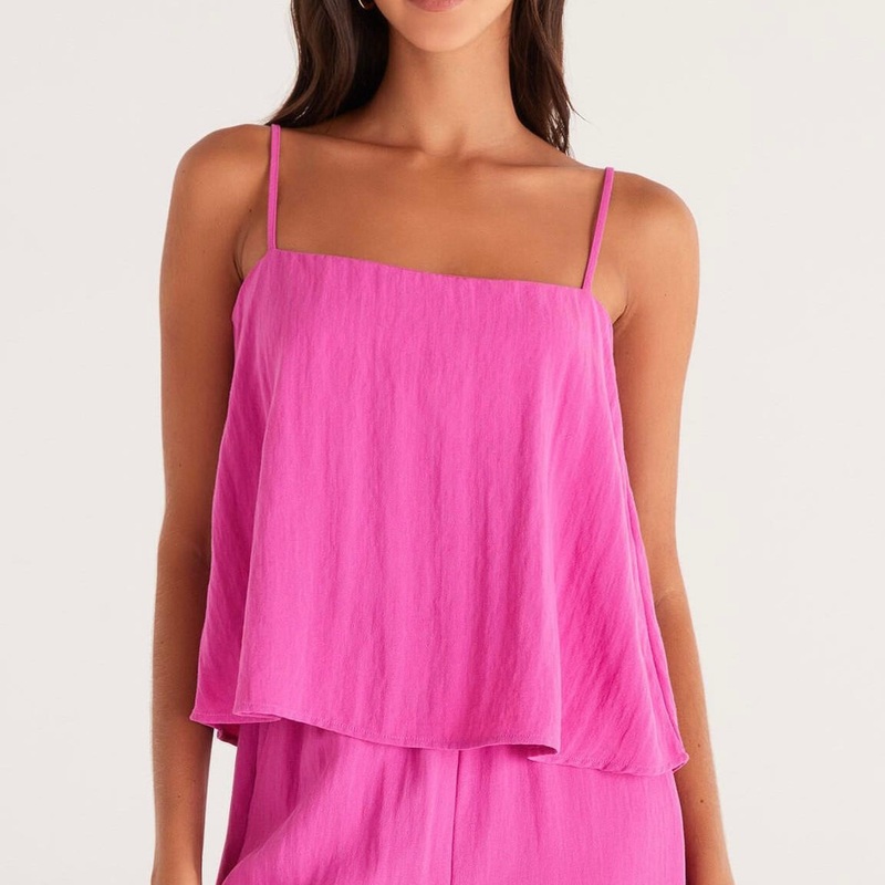 ZSupply Annie Tank in Pink.The Annie Tank is one of our newer, elevated tanks and we think you're gonna love it. Made using our Airy Flat Rayon, this loose and flowy adjustable spaghetti strap tank features a straight neckline with a built-in shelf bra and