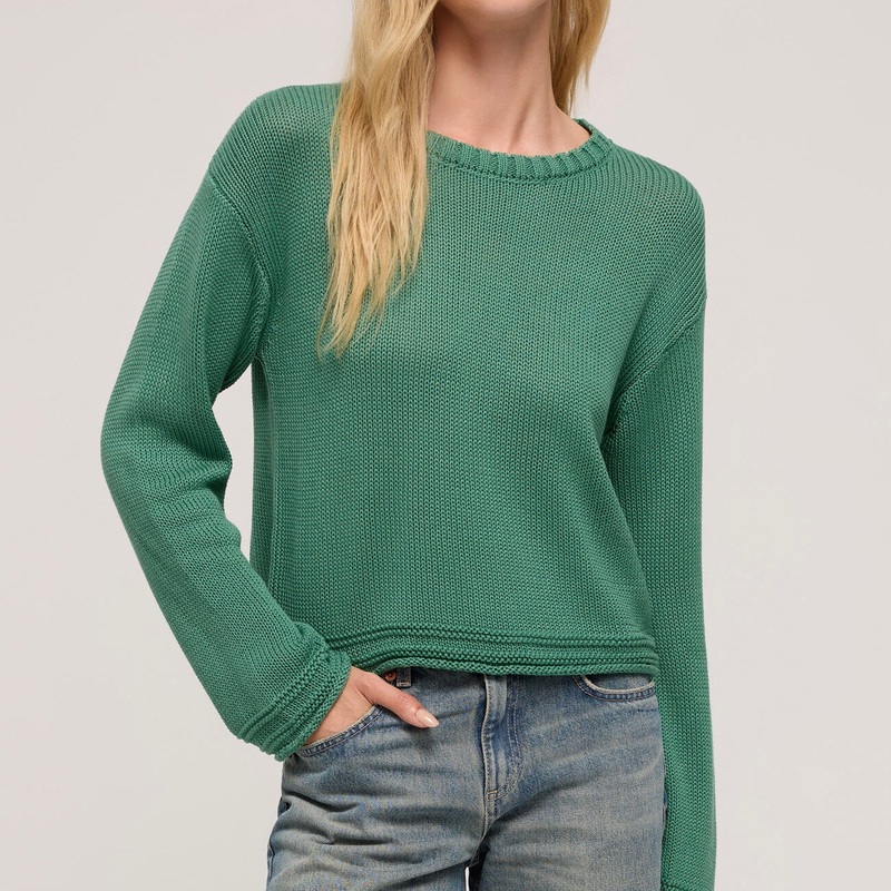 ZSupply Emerson Sweater in Botanical Green.Relaxed fit, model is wearing size small.ZW243809Sienna Yarns: 100% Cotton