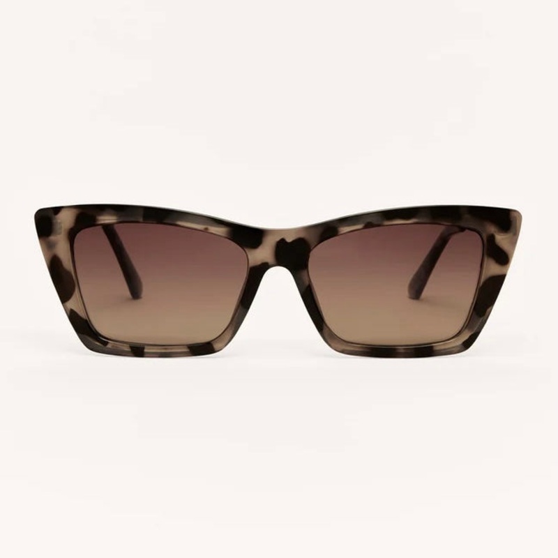 ZSupply Lookout Sunglasses in Brown Tortoise. These medium-sized cateye frames combine an injected nylon front with sleek metal temples for a chic, polished look. Featuring polarized lenses, they offer effortless style.