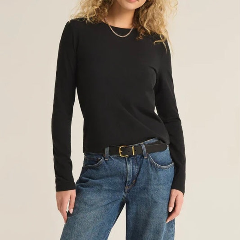 ZSupply Modern Long Sleeve Tee in Black.One of our favorite long sleeves, the Modern Slub Long Sleeve Tee is back this season with its updated finer rib neckline for a lighter, more refined look. Designed with a slim fit, this tee is perfect worn tucked in
