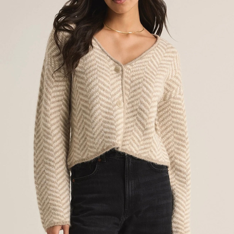 ZSupply Noemi Herringbone Cardigan in Sea Salt.