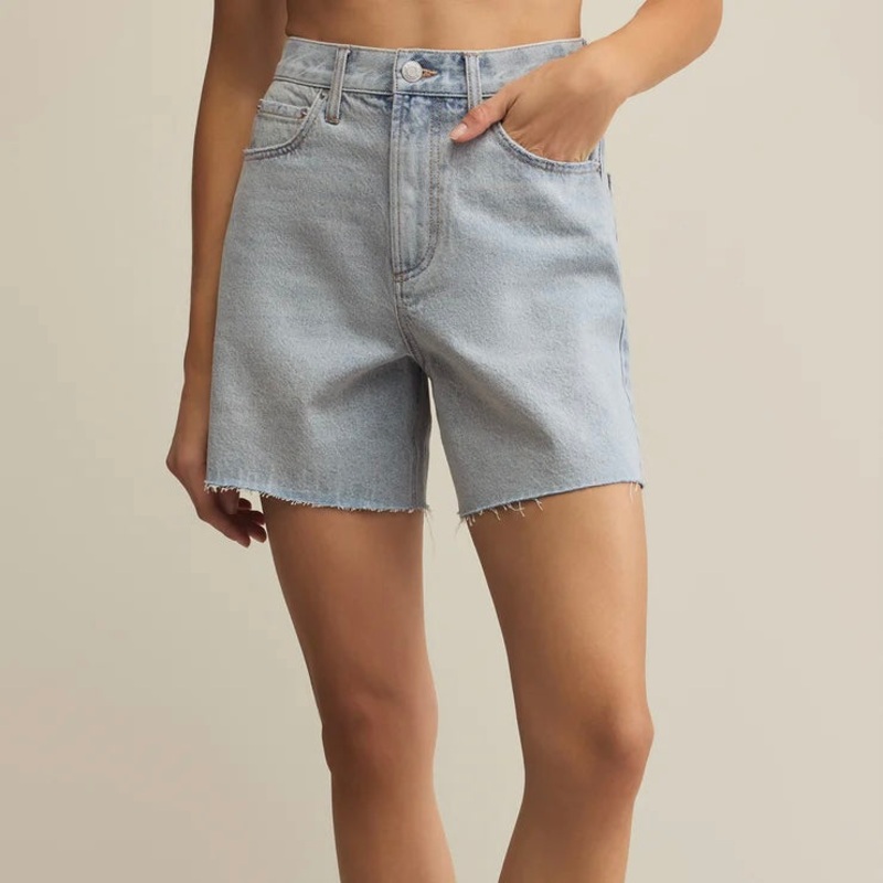 ZSupply Porter Short in faded indigo. A timeless staple, these relaxed high-rise denim shorts feature a classic five-pocket design, a zip fly, and the perfect laid-back fit. Theyre an effortless go-to for any outfit.