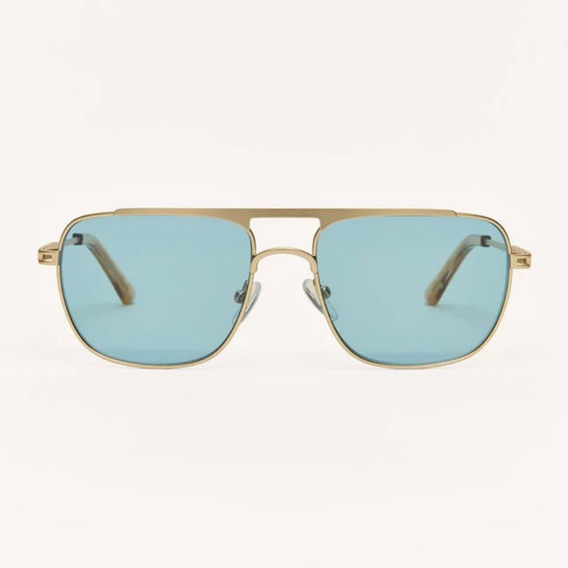 ZSupply Skyline Sunglasses in Gold and Light Blue. Bring vintage vibes to your wardrobe with these 70s-inspired metal aviators, crafted with an optical-quality medium metal frame and polarized lenses. A timeless pick with a retro edge.Optical Quality Metal