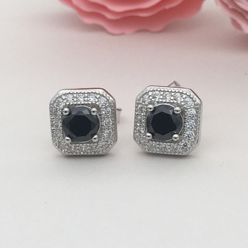 These square earrings are made of genuine 925 sterling silver and feature sparkling cubic zirconia stones. Each earring measures 9mm x 9mm, making them a perfect size for everyday wear. Add a touch of elegance to any outfit with these high-quality earrings